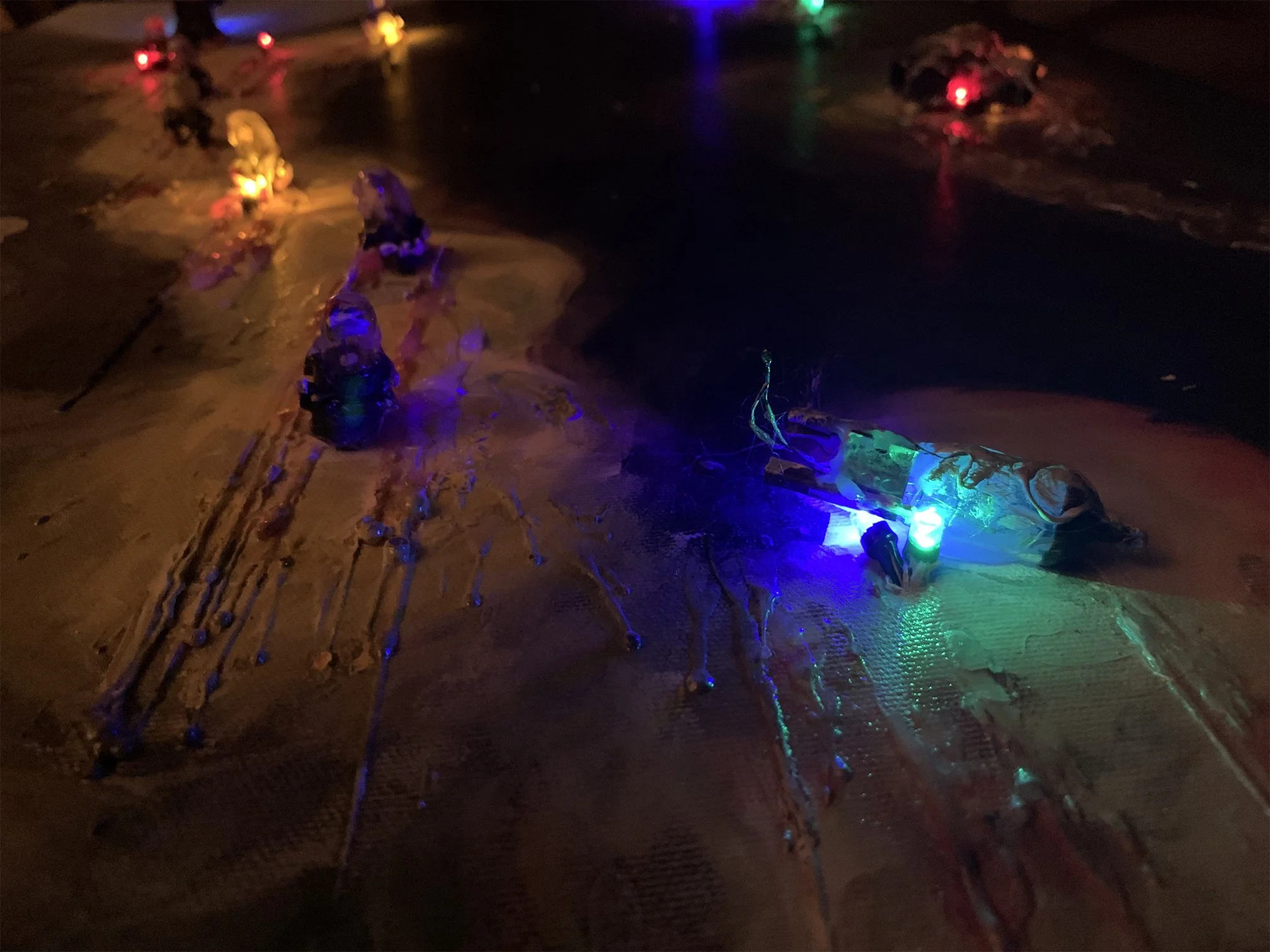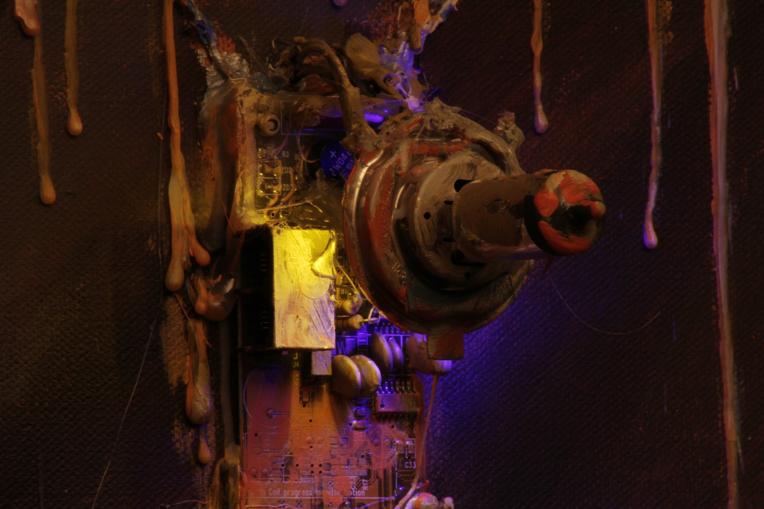 Oil, acrylic, LED and mixed media